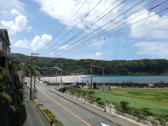 神津島には展望台がたくさんあります。そのうちの1つ、ありま展望台(写真中央の丘の上)を目指して出発します。