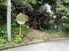 切り通しの側面には、木の根が大きく露出しているところもあります。