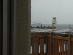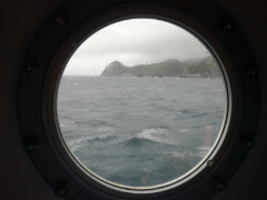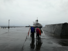 帰りの朝がやってきました。雨風の弱まるタイミングを狙って港まで歩きます。