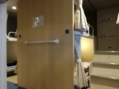 部屋へ戻ってベッドでくつろぎます。大島を出ると船内は一気に空き、筆者の乗る区画(定員16人)は貸し切り状態となりました。
