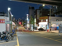 ソウル駅で首都圏電車1号線に乗り換え、ホテルの最寄り駅である新里門駅までやってきました。もう20時近いですが韓国はまだ明るいです。