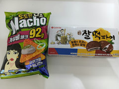 夜食はコーンスナックとチョコパイです。日本ではあまり見かけない商品を選んで買ってみました。