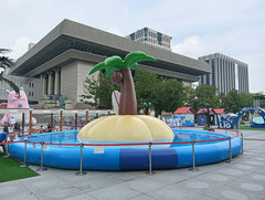 鐘閣駅から景福宮まで歩きます。途中の道ではプールの準備をしているのが見えます。朝から暑いのでプールは気持ちよさそうです。