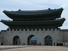 前回の訪韓の後で復元された光化門。門の中はもう交代式を見に来た人でいっぱいです。