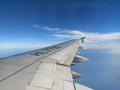 成田空港を離陸しました。見渡すかぎり青空、いいお天気です。